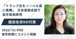新外交イニシアティブ(ND)の猿田佐世代表が10月27日のテレビ朝日「羽鳥慎一モーニングショー」に出演しました。パネルを使って議論するメインのコーナーでは、高市内閣で就任した鈴木憲和農水大臣がスタジオ出演して、高止まりする米の価格に新政権がどのように対応するか、今後の日本の農業をどうするか、猿田代表を含め、コメンテーターが鈴木新農水大臣に質問して、突っ込んだ議論を展開しました。