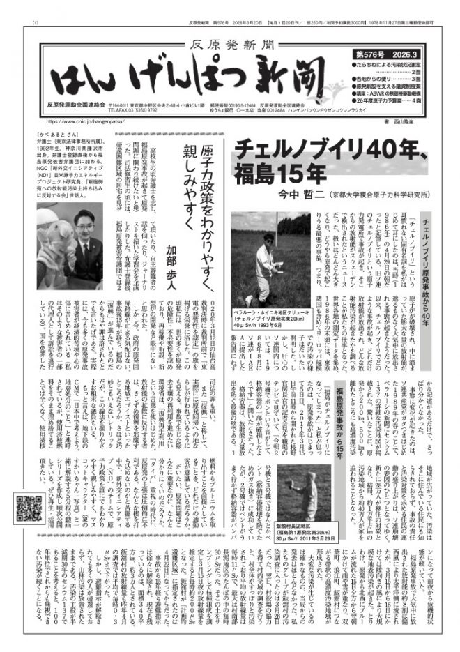 NDエネルギープロジェクトの加部歩人研究員のコラムが、26年3月20日発行の「はんげんぱつ新聞」(第576号)に掲載されました。加部研究員のコラムは下記よりご覧いただけます。